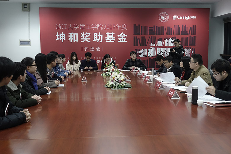2018年1月3日18:30,浙江大學(xué)建工學(xué)院2017年度“坤和獎(jiǎng)助基金”評(píng)選會(huì)在浙江大學(xué)紫金港校區(qū)舉行。浙大建工學(xué)院黨委副書記傅慧俊、建工學(xué)院土木系副系主任陳水福教授、建筑系副教授王卡、班主任代表金立喬,坤和集團(tuán)品牌營銷部負(fù)責(zé)人邱蘋蘋、總裁辦朱樹閣等親臨現(xiàn)場(chǎng),并擔(dān)任面試評(píng)委?!袄ず酮?jiǎng)助基金”特設(shè)有“獎(jiǎng)助學(xué)金”及“國際交流助力金”。本次評(píng)選會(huì)主要針對(duì)坤和獎(jiǎng)助學(xué)金申報(bào)者,面向免試推薦研究生(2018屆保研至浙江大學(xué)建工學(xué)院)學(xué)生、大三建筑規(guī)劃專業(yè),大二全體本科生,獎(jiǎng)助金額為10000元/人/年,續(xù)評(píng)3年。經(jīng)過自主報(bào)名和學(xué)院初選,共有35名優(yōu)秀本科生參加了本次評(píng)選會(huì)。